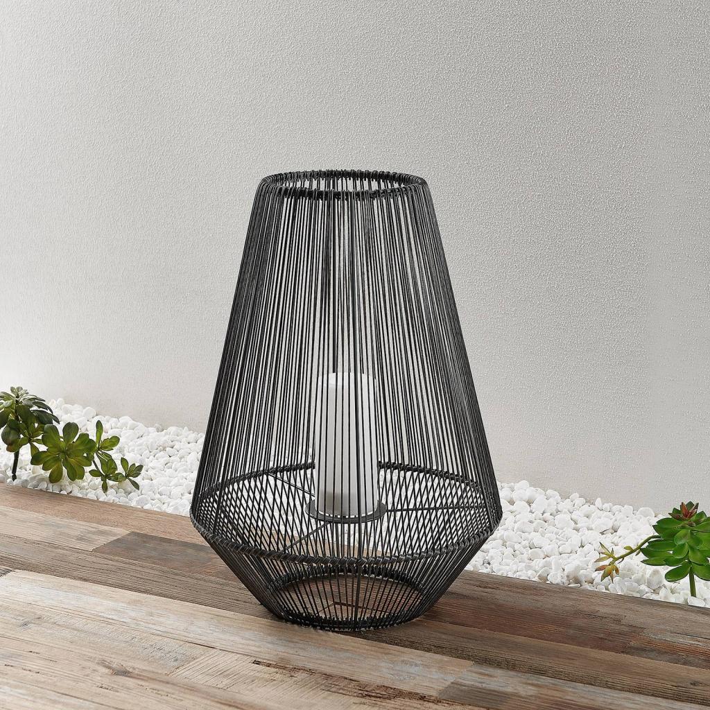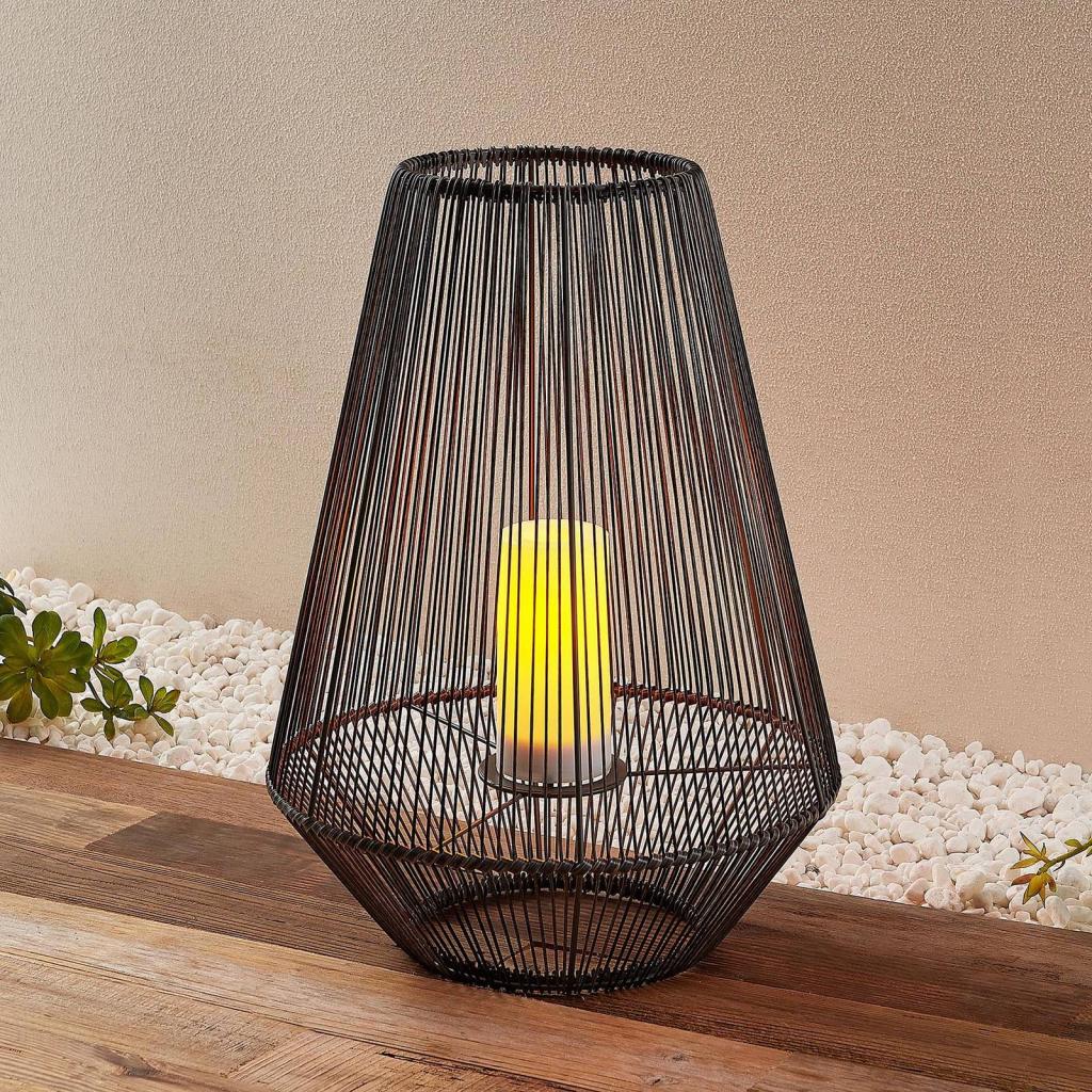 Diese stilvolle Laterne in Rattan-Optik wurde aus Metall und Polyratten hergestellt. Das besondere Design, in Kombination mit der LED-Kerze, zaubert eine gemütliche Atmosphäre auf Ihrer Terrasse oder Balkon. Das Polyrattan ist in schwarz hergestellt. Der Dämmerungssensor schaltet die LED-Kerze bei Dunkelheit automatisch ein. Sie können die Solarleuchte problemlos im Außenbereich nutzen. Diese Rattan-Laterne ist UV-beständig, wetterfest und pflegeleicht.
