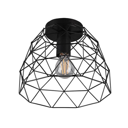Die korbförmige Deckenleuchte Basgaid im Vintage-Style sieht aus, als wäre ein Gitterkorb an der Decke angebracht. Diese ungewöhnliche Form lässt es hervorstechen und passt perfekt in Wohnungen, die im Vintage-Look dekoriert sind. Besonders Filamentlampen passen gut in diese Deckenleuchte.