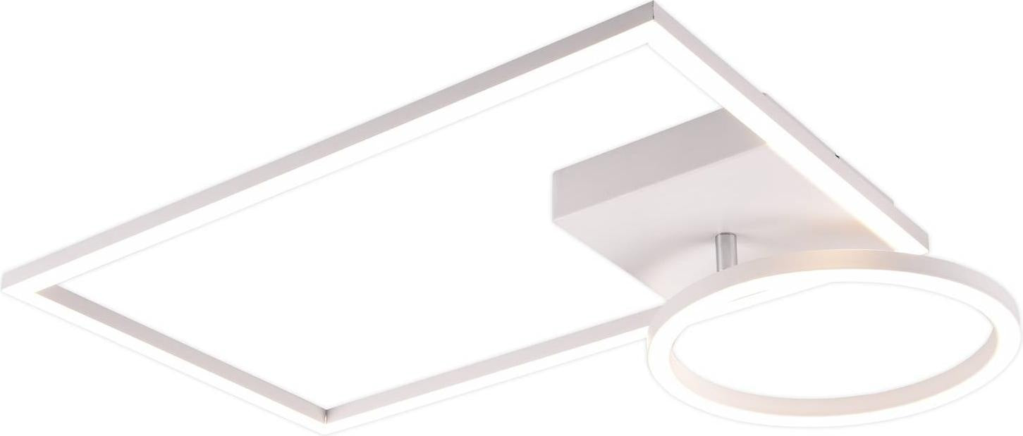 Das große Rechteck und ein kleiner Kreis aus Aluminiumprofilen mit silbernem Lack bilden die Farbtöne der Coljana LED Deckenleuchte. Die modern gestaltete Leuchte bietet große Flexibilität bei der Lichtplanung, da sie mit einer Fernbedienung geliefert wird, die eingeschaltet werden kann und auch die Lichtfarbe im Bereich von warmweiß bis Tageslicht verdunkelt. Ob im Wohnzimmer, in der Küche oder im Schlafzimmer - die Leuchte bietet Licht für jede Situation und Aktivität. LEDs in den Profilen sind mit einer Polycarbonatabdeckung bedeckt und glänzen gleichmäßig ohne sichtbare Lichtflecken. Flexibel, modern und vielseitig - diese Features machen die LED-Deckenleuchte Coljana absolut universelle Beleuchtung.
