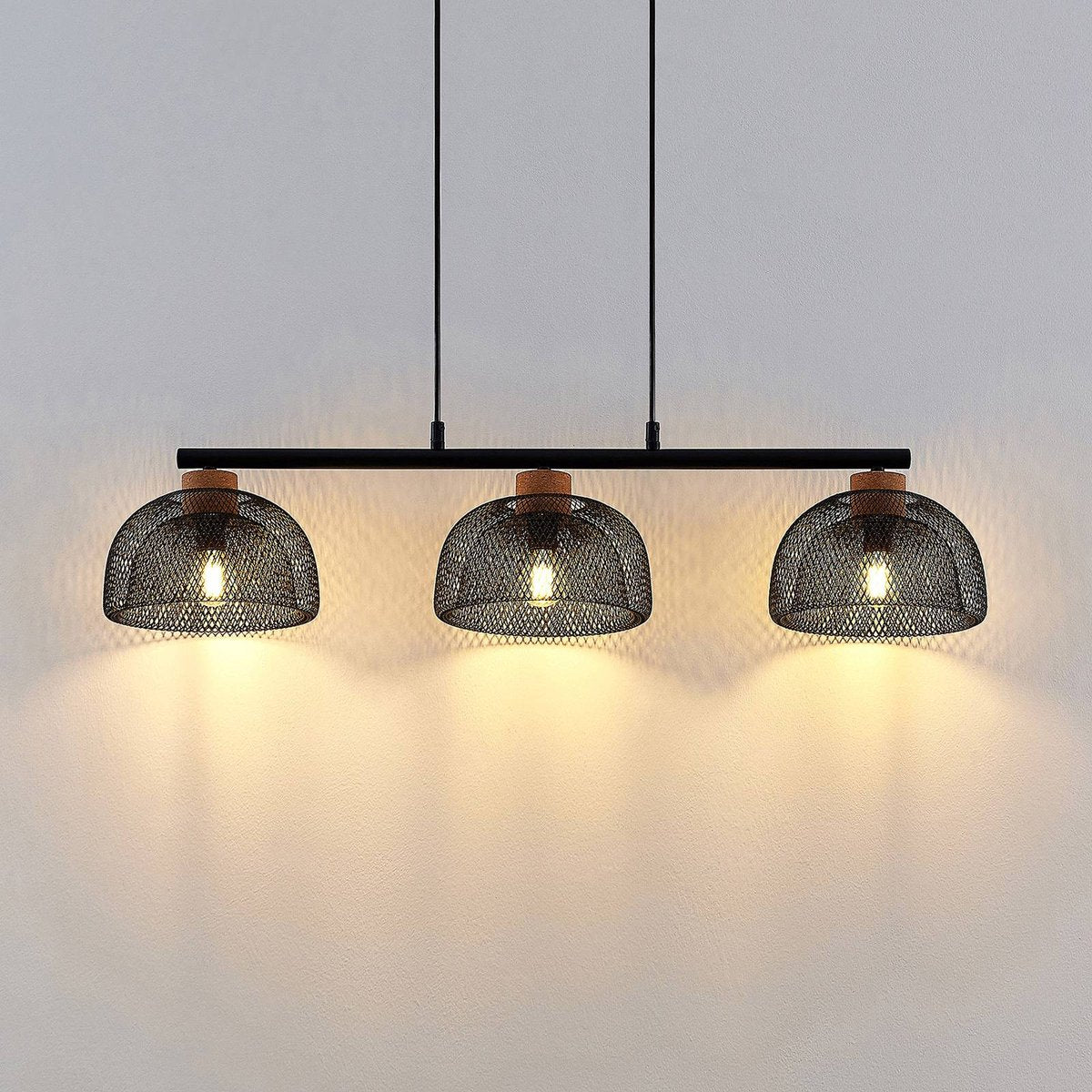 Diese elegante Pendelleuchte von Lindby überzeugt mit modernem Design und warmem Lichtambiente. Drei Metallschirme in edlem Schwarz sorgen für eine gleichmäßige, angenehme Ausleuchtung über dem Esstisch oder in der Küche. Ausgestattet mit 3x E14-Fassungen (max. 40 W, 230 V / 50 Hz) bietet sie flexible Leuchtmittelwahl. Mit einer Breite von 69,5 cm und einer höhenverstellbaren Aufhängung bis 150 cm passt sie perfekt über jeden Tisch. Schutzart IP20, geprüft nach CE und UKCA-Standards – stilvoll, sicher und langlebig.