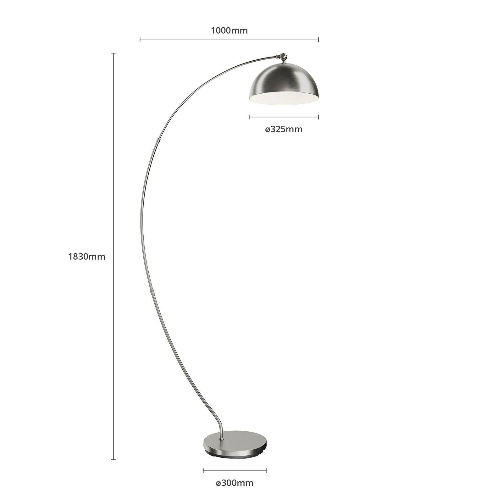 Diese Bogenstehleuchte besitzt eine matte Nickeloberfläche und ist ein elegantes Beleuchtungselement für den Wohnbereich. Die Lampe ist individuell für Sie dimmbar und ermöglicht somit eine gemütliche Atmosphäre zum Wohlfühlen. Sie ist mit einem Schalter zum individuellen Einschalten und Ausschalten der Leuchte versehen.