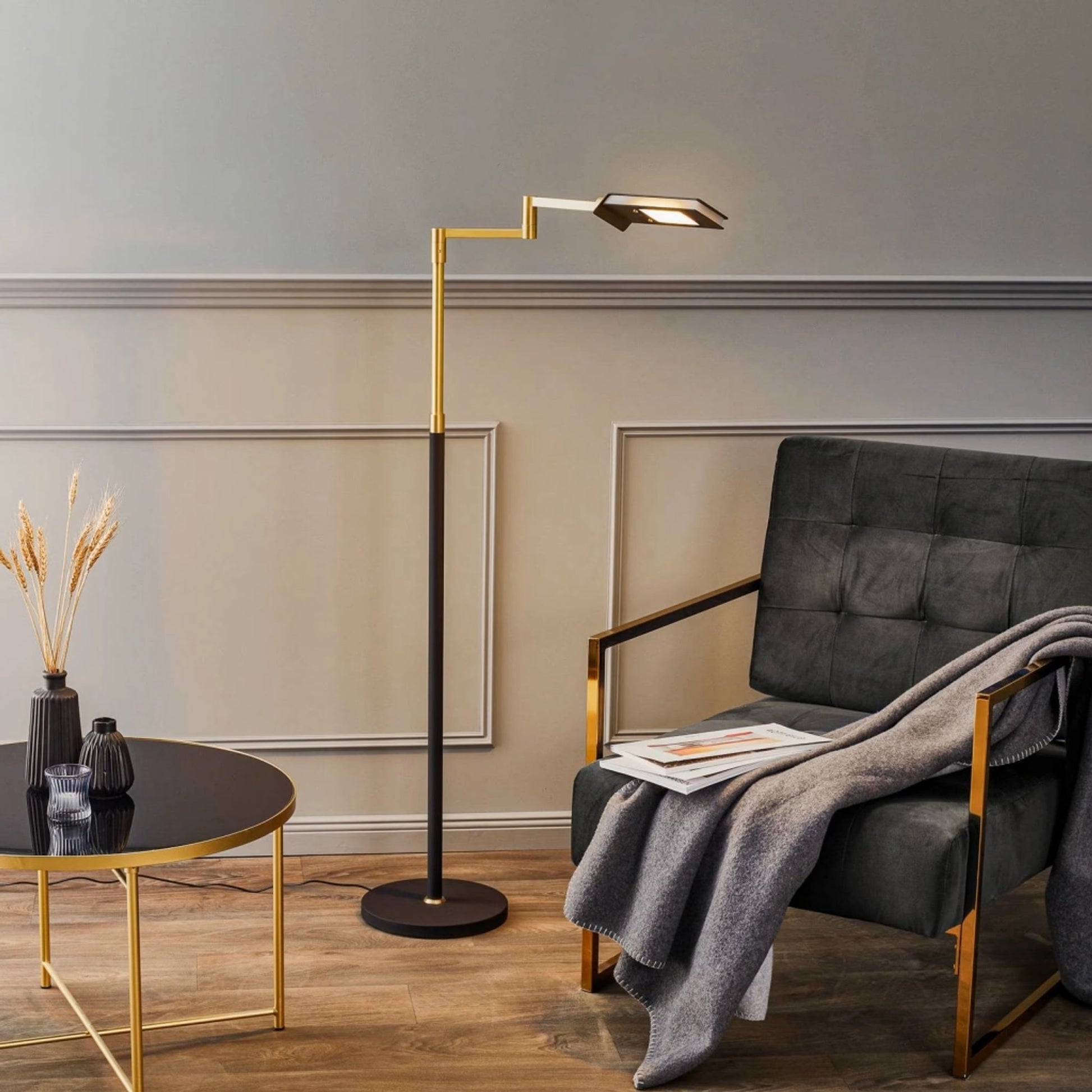 Diese Lampe ist eine sehr nützliche Ergänzung in vielen Wohnzimmern, da die LED-Bodenlampe vor allem als Leselampe verwendet und neben einem Sessel oder Sofa platziert werden kann. Hier ist es von Vorteil, dass der Kopf genau mithilfe mehrerer Gelenke eingestellt werden kann, sodass das Licht auf den Ort trifft, wo es benötigt wird (zum Lesen). Für noch mehr Komfort gibt es einen Dimmer, der die Helligkeit nach persönlichen Vorlieben reguliert. Quendrim wird in Deutschland hergestellt und ist ein hochwertiges Produkt mit erstklassiger Qualität und bestem Design.