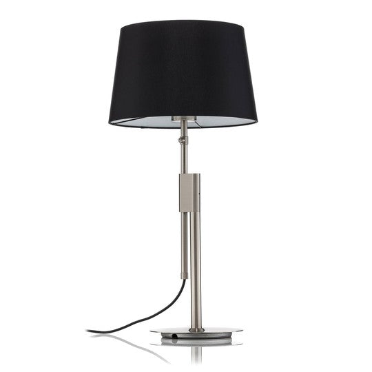 Stufenlos höhenverstellbare Lemalian-Tischlampe mit einem Stoffschirm. Lemalian ist eine attraktive Lichtquelle für ein Wohnzimmer mit schönen und komfortablen Lichtverhältnissen. Die Leuchte kann gut als Hockerlampe verwendet oder auf niedrige Beilagen platziert werden. Sein Stoffschirm lässt das Licht sanft herauskommen und der Rahmen lässt sich stufenlos in einer Höhe von 63 cm bis 82 cm einstellen. Zudem ist ein Kontaktdimmer in die Leuchte integriert, um die Helligkeit nach Wunsch anzupassen. Diese edle Tisch- und Stuhlleuchte ist eine stilvolle Lichtquelle für Wohnräume, die in Deutschland hergestellt wird und höchste Qualitätsstandards erfüllt und erstklassig abgeschlossen ist.