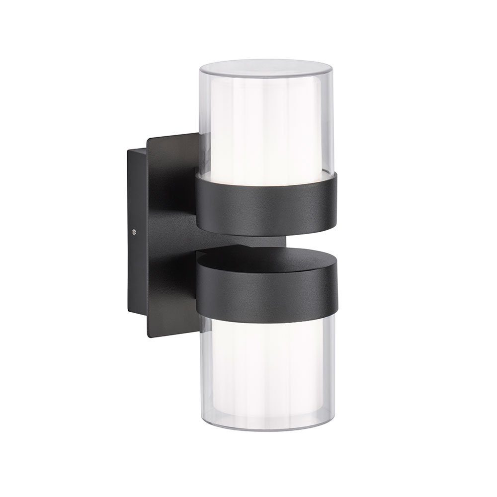 Die Außenleuchte ist mit zwei zylindrischen LED-Lichtquellen ausgerüstet. Neben der gewünschten Ausleuchtung produzieren diese ein attraktives Licht- und Schattenspiel an der Hauswand.